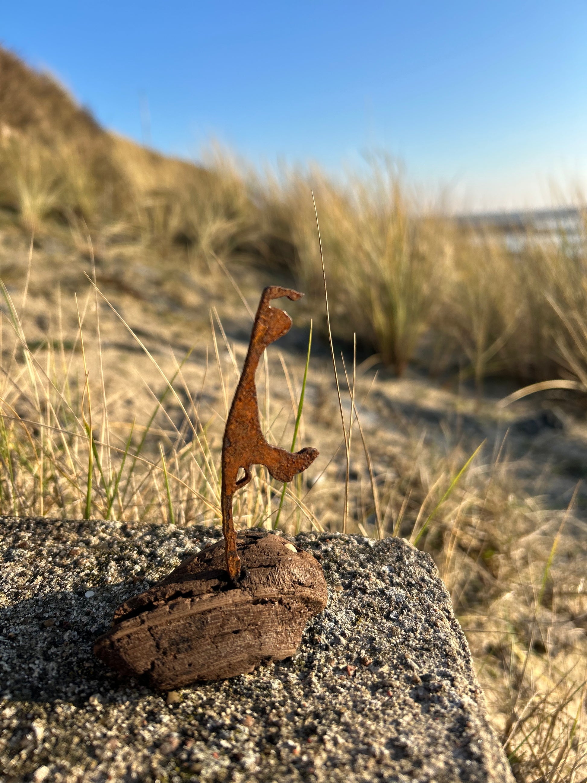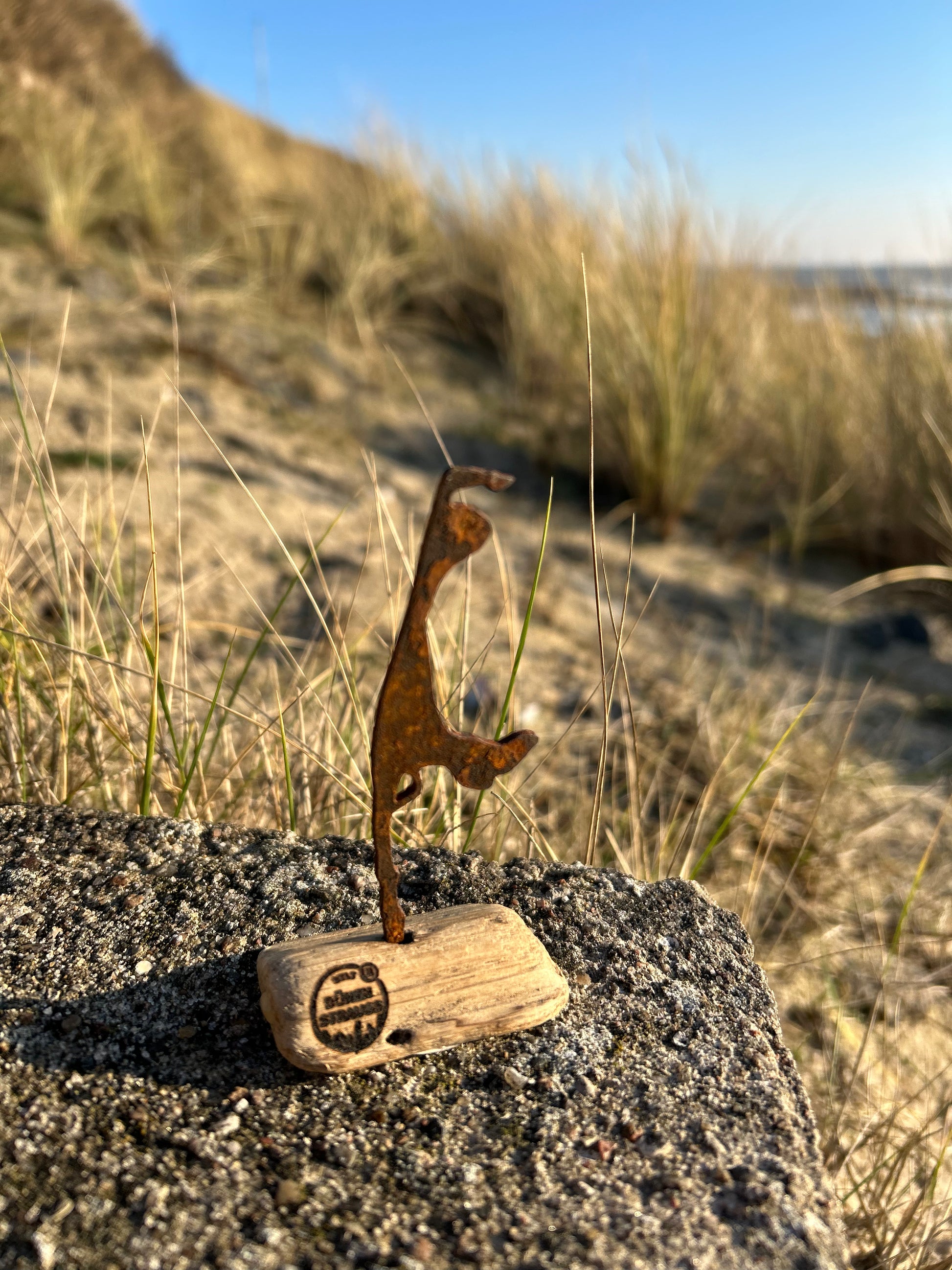 Jede Skulptur steht auf einem Stück echten Sylter Driftwoods, das wir selbst am Strandsaum gesammelt haben. Nach einer sorgfältigen Trocknungsphase wird jedes Fundstück in liebevoller Handarbeit weiterverarbeitet – so entsteht aus jedem Exemplar ein kleines Unikat mit großer Wirkung.